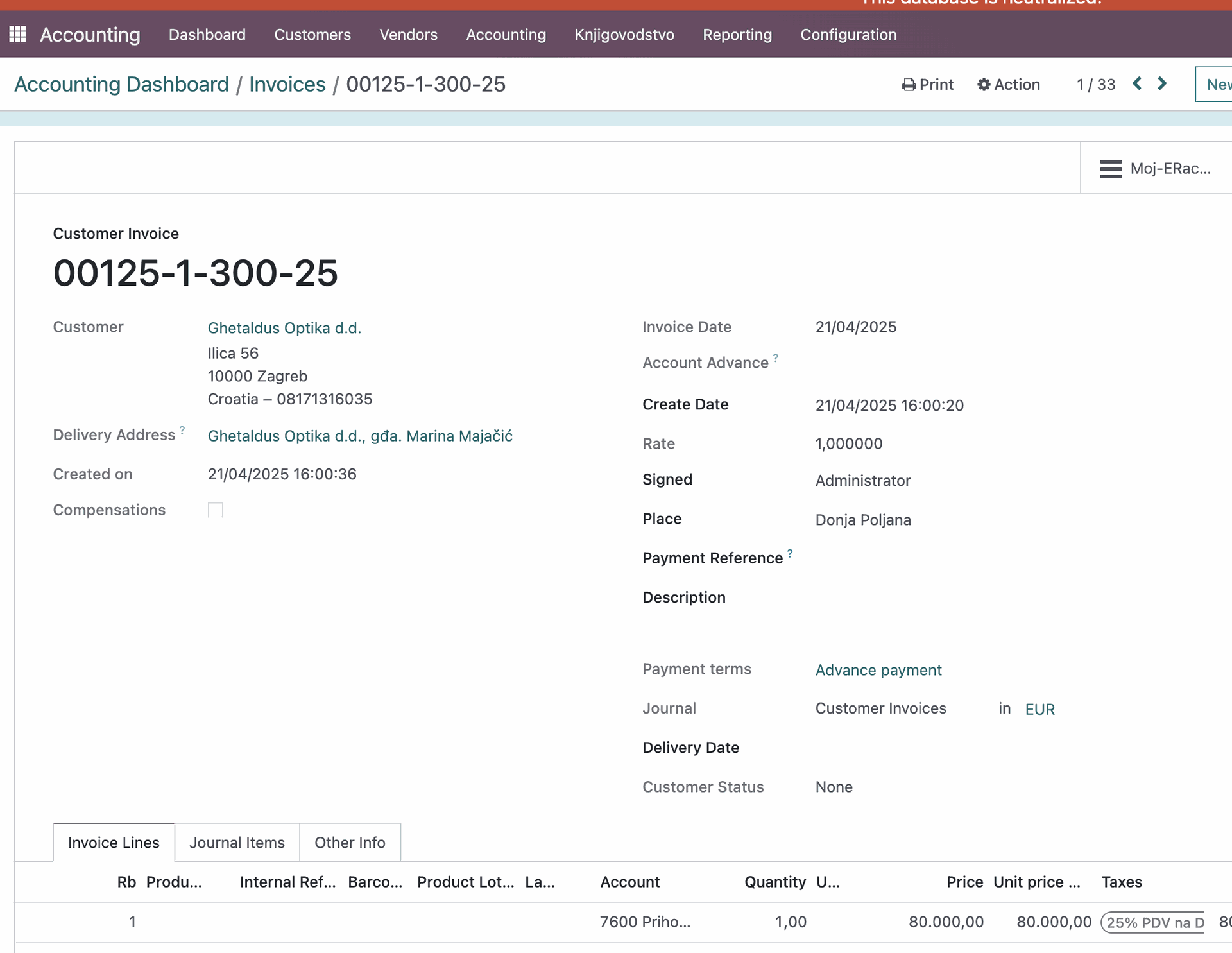 Napravi se račun kao i za bilo što drugo, direktno na konto prihoda, i proknjiži:
