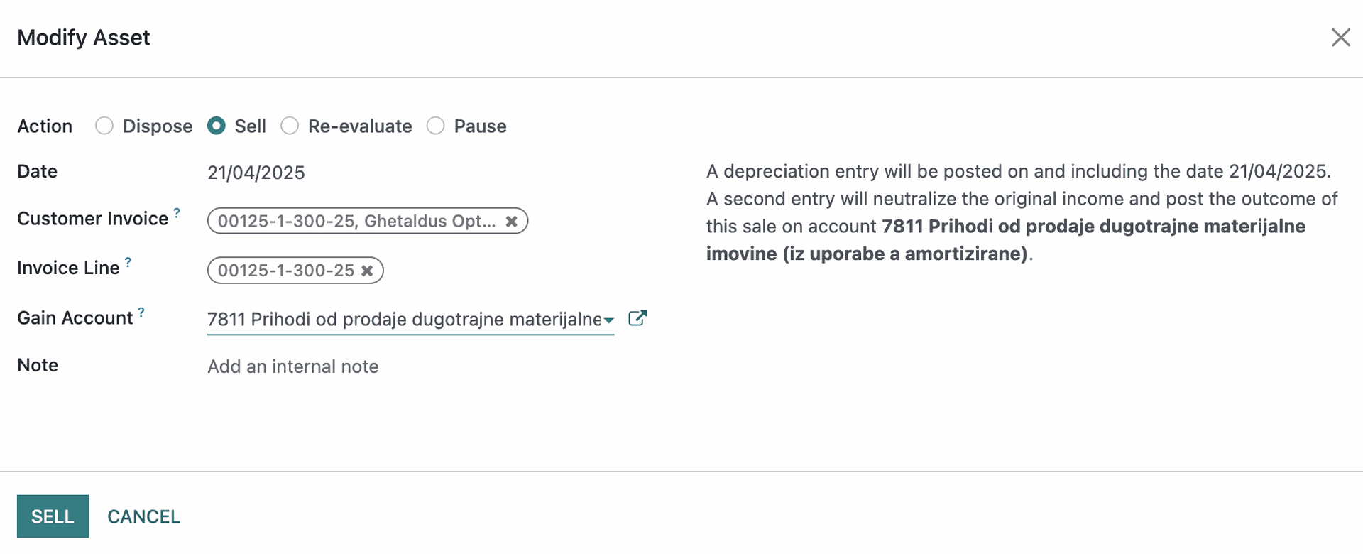 - Na kartici osnovnog sredstva klikne se na Modify Depreciation