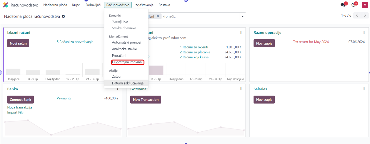 Možete odabrati Kontni plan iz izbornika "postavke" kako biste automatizirali imovinu.